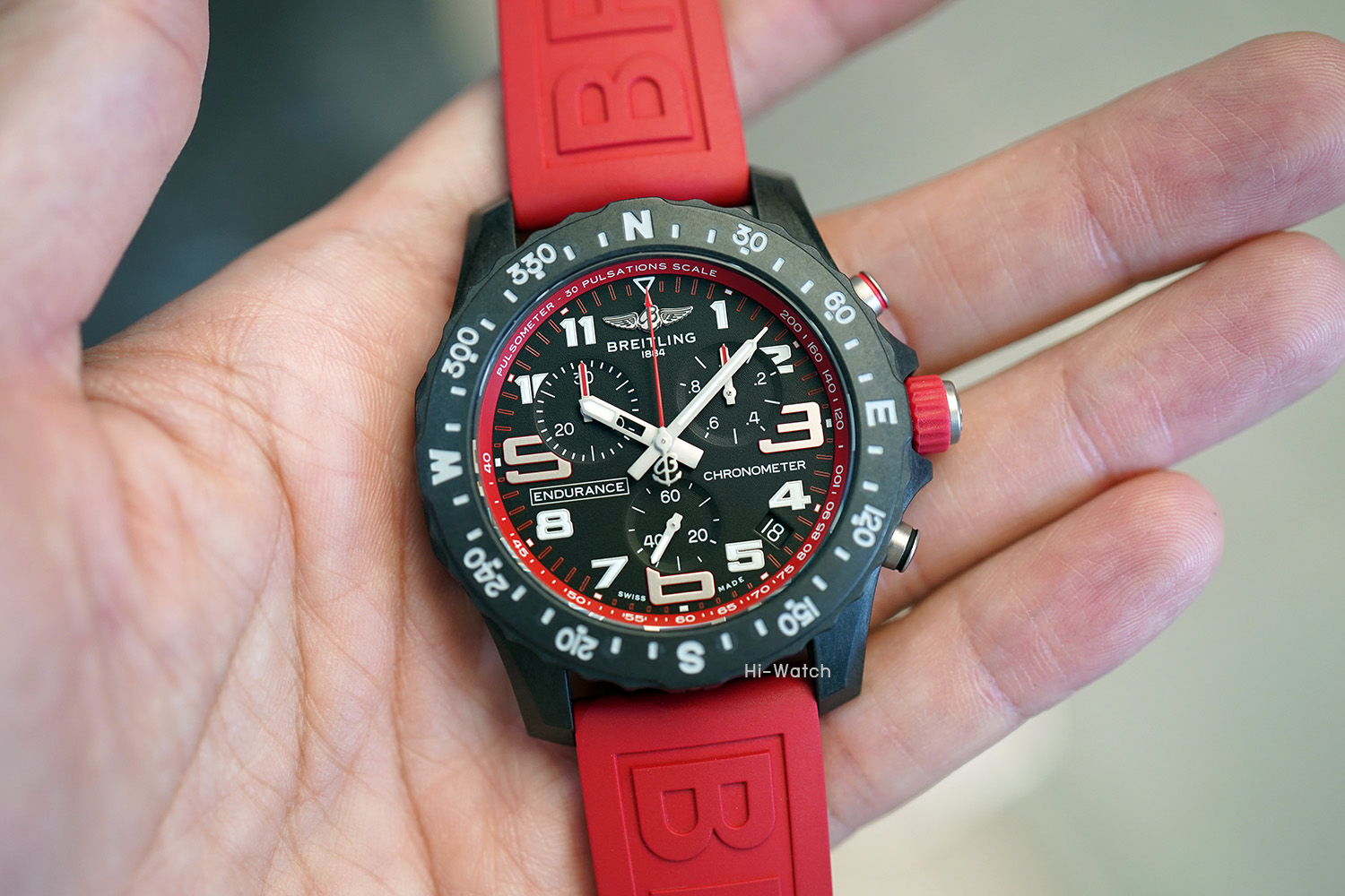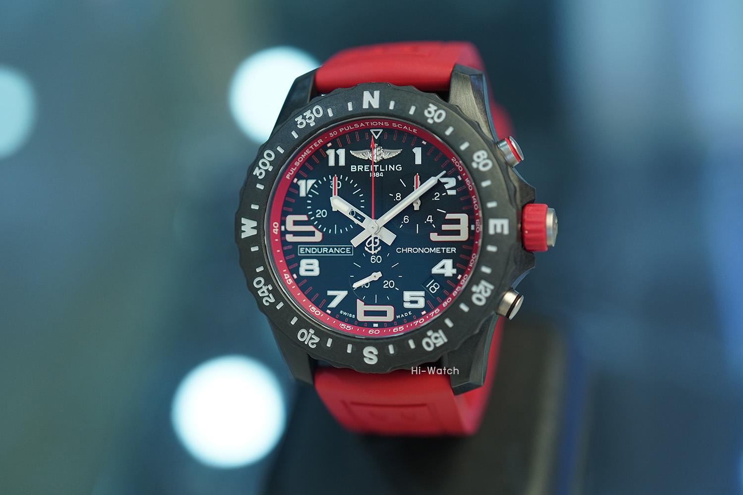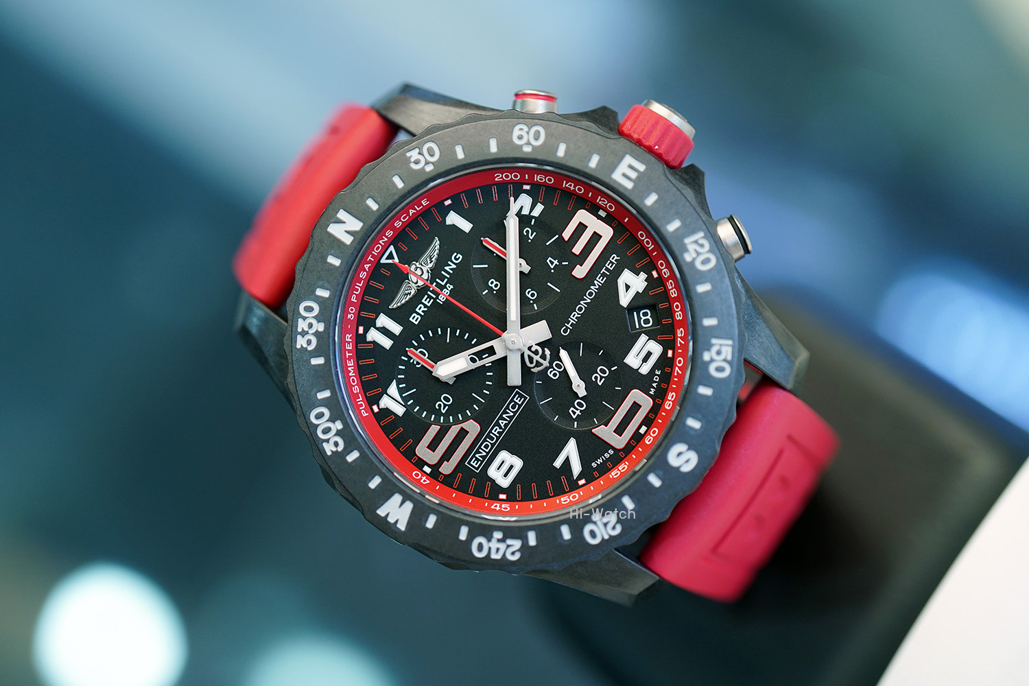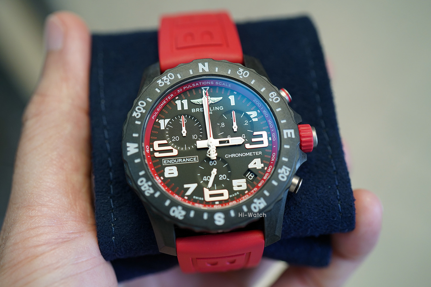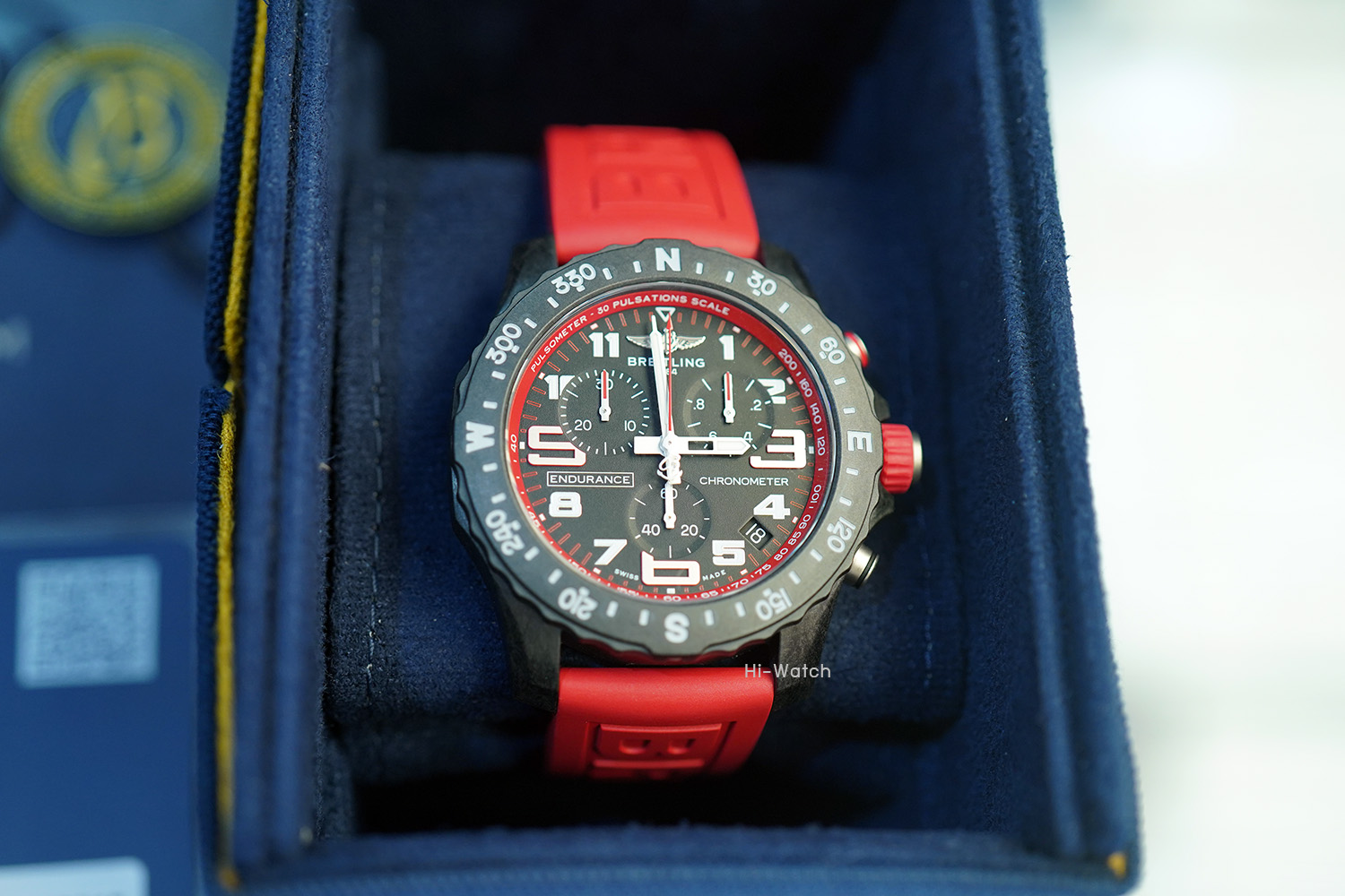 -Used Like New ตัวเรือน Breitlight เบาเพียง 64.5 กรัม ขนาด 44 มม ขอบหน้าปัดพร้อมสเกลบอกองศาของทิศ N-E-W-S หน้าปัดสีดำด้านและหน้าปัดย่อยสำหรับบันทึกและจับเวลาแบบ Tricompax ขอบหน้าปัดด้านในมี Pulsometer scale สำหรับคำนวณการเต้นของหัวใจสำหรับนักกีฬาที่มีสีเหมือนกับสายนาฬิกาหมุนได้สองทิศทาง เครื่อง SuperQuartz จับเวลาได้ เดินตรงมาก +-10 วินาทีต่อปี สายยางสีแดง