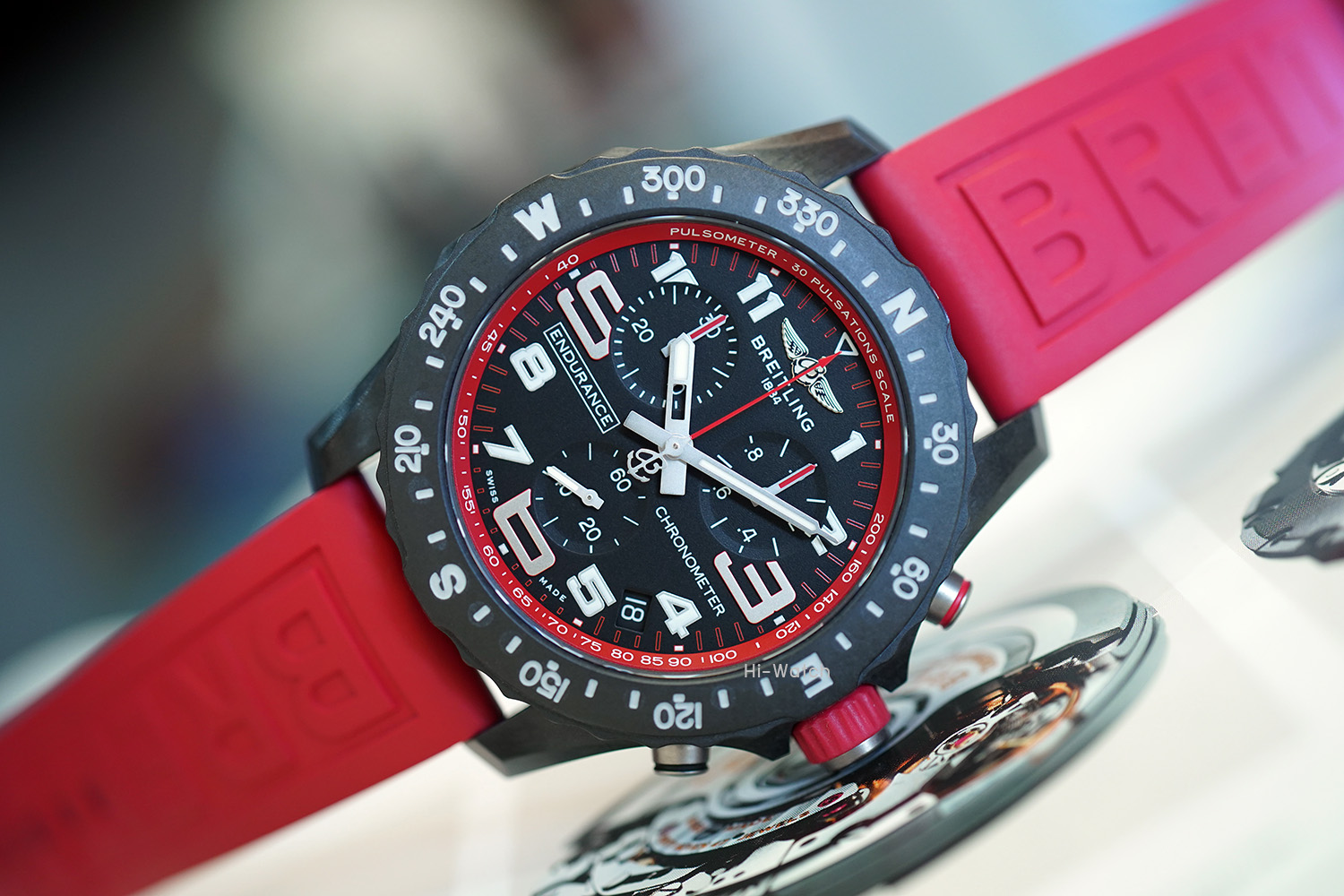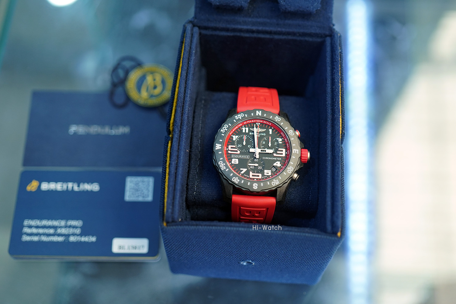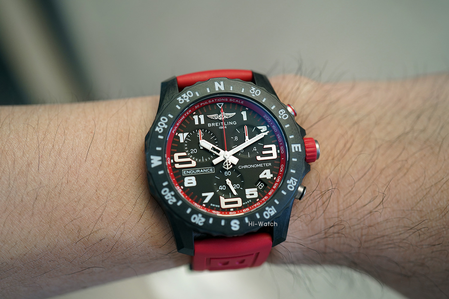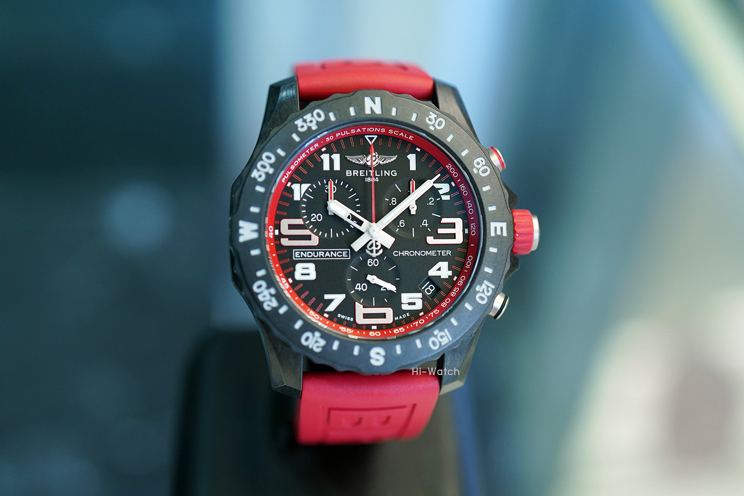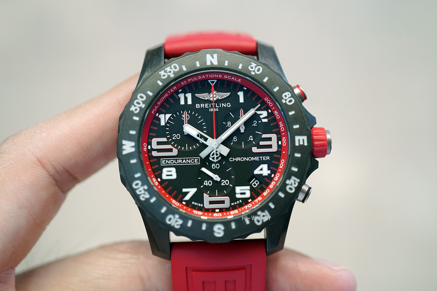 -Used Like New ตัวเรือน Breitlight เบาเพียง 64.5 กรัม ขนาด 44 มม ขอบหน้าปัดพร้อมสเกลบอกองศาของทิศ N-E-W-S หน้าปัดสีดำด้านและหน้าปัดย่อยสำหรับบันทึกและจับเวลาแบบ Tricompax ขอบหน้าปัดด้านในมี Pulsometer scale สำหรับคำนวณการเต้นของหัวใจสำหรับนักกีฬาที่มีสีเหมือนกับสายนาฬิกาหมุนได้สองทิศทาง เครื่อง SuperQuartz จับเวลาได้ เดินตรงมาก +-10 วินาทีต่อปี สายยางสีแดง