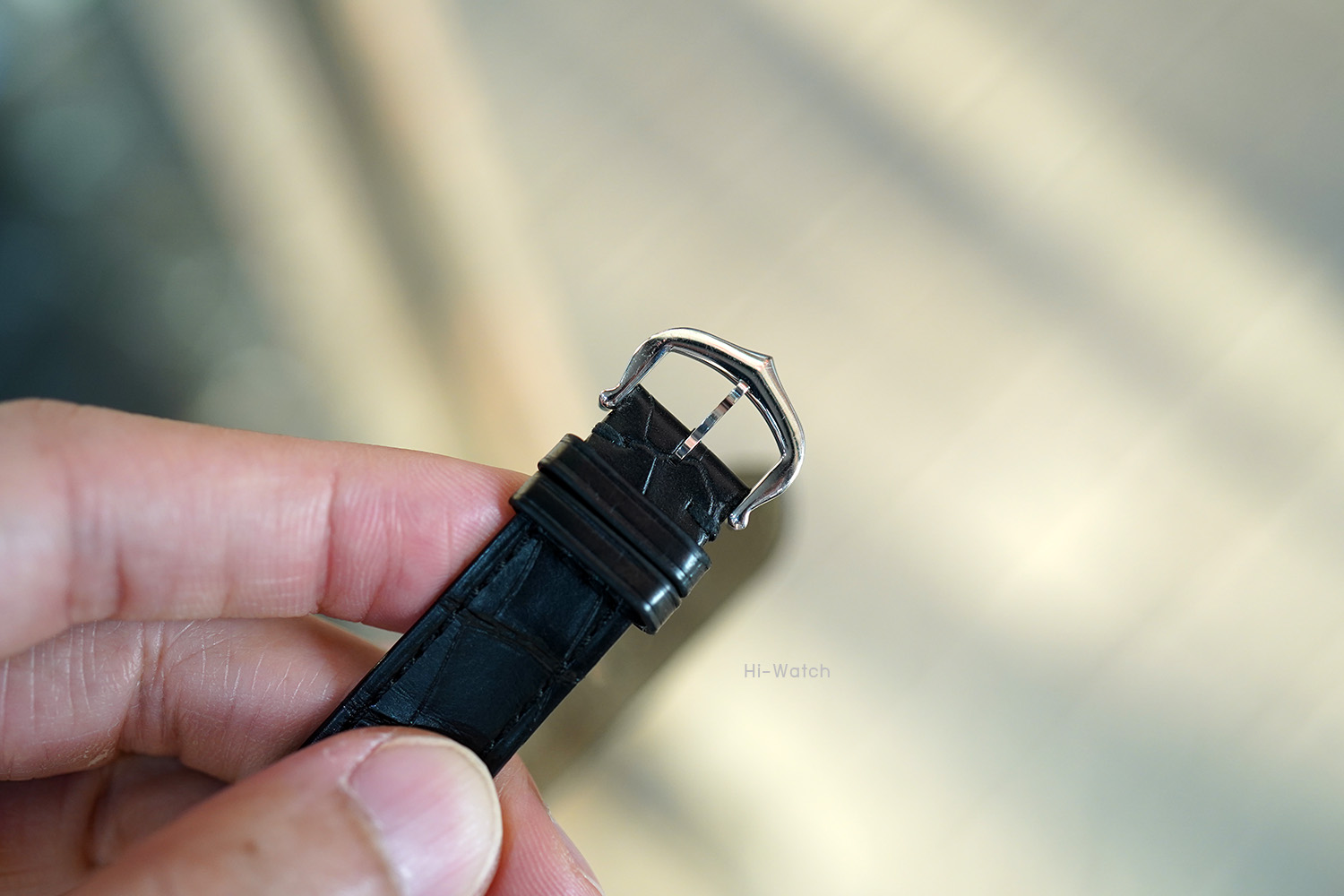 -Used Like New หน้าปัดสี Silver ขนาด 38.0 mm x 27.5 mm เข็ม blued-steel ตัวเรือน Stainless ขอบ Bezel 18K Rose Gold เครื่อง Quartz ถ่านอยู่ได้ถึง 6 ปี สายหนังจระเข้สีดำ