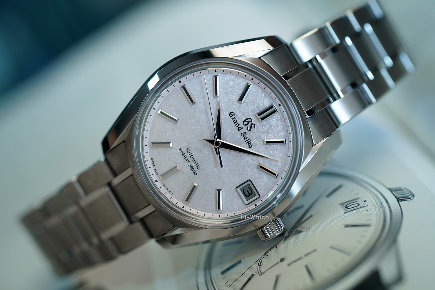 -Used Like New หน้าปัดสีชมพูอ่อน ที่แสดงถึงดอกซากุระที่ถูกปกคลุมด้วยหิมะ ขนาด 38 mm ตัวเรือนและสายของผลิตจากไทเทเนียมที่มีความหนาแน่นสูง ซึ่งทนทานต่อการเกิดรอยขีดข่วนได้ดีกว่าไทเทเนียมแบบปกติทั่วไป หลังเปลือยโชว์เครื่อง in-house 9S85 Hi-Beat 36000 Power Reserve 55 ชม. สายขัดด้านขลิบเงา บัคเคิลปุ่มกด