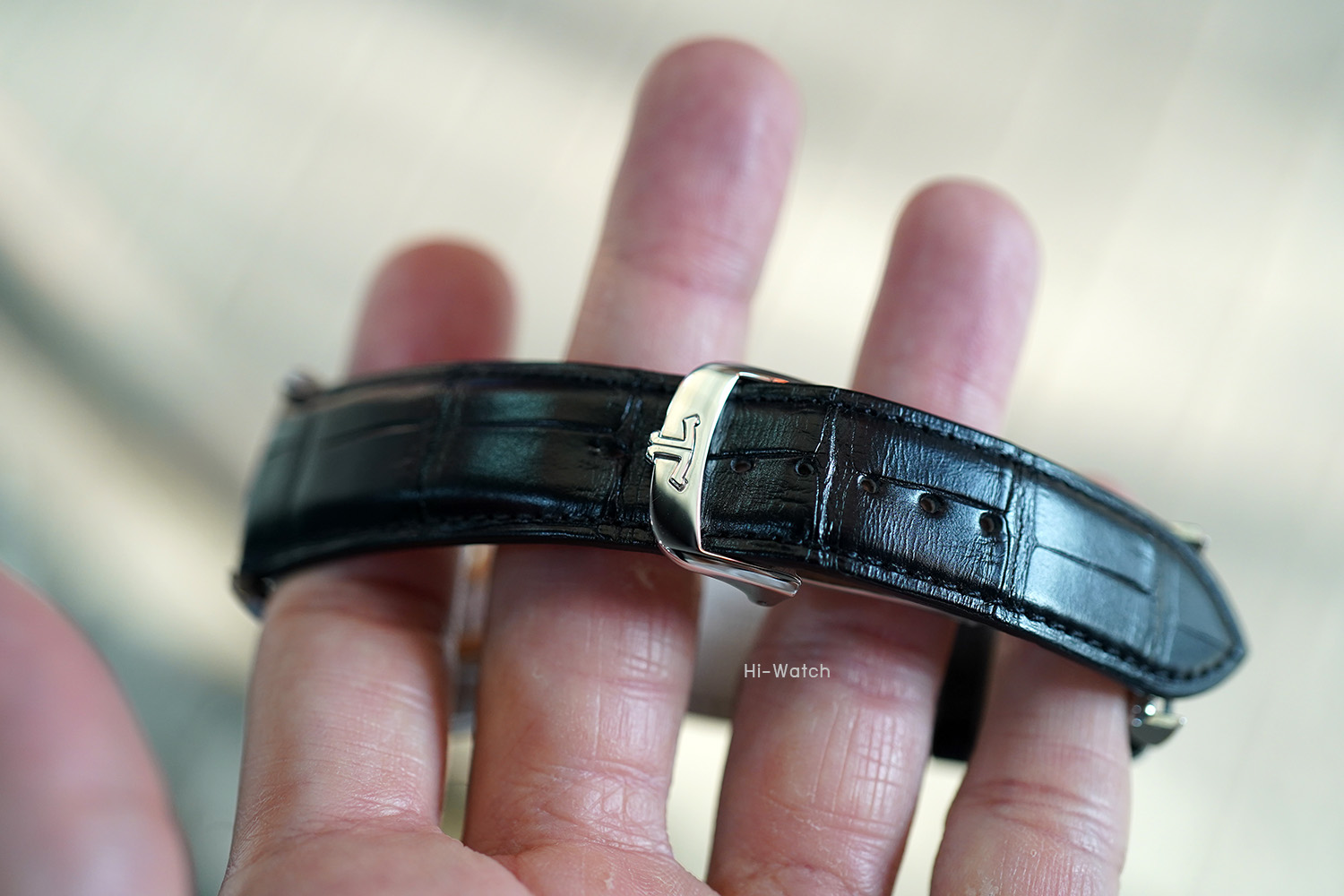 -Used Like New ตัวเรือนขนาด 39 mm หน้าปัด Silvered grey, Sunray-brushed เครื่อง Automatic Moonphase หลังเปลือยโชว์ Rotor Solid Gold สายหนังจระเข้สีดำตัดเย็บอย่างปราณีตจับคู่กับ Folding Buckle