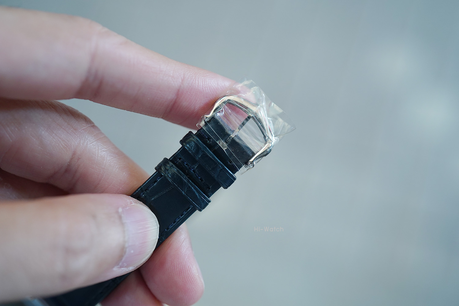 -ของใหม่มือ 1 ไม่เคยใช้งาน หน้าปัดสี Silver ขนาด 38.0 mm x 27.5 mm เข็ม blued-steel ตัวเรือน Stainless กลไกควอตซ์ซึ่งขับเคลื่อนด้วยกลไกอัตโนมัติขั้นสูง (~ 8 ปี) สายหนังจระเข้สีกรมท่า