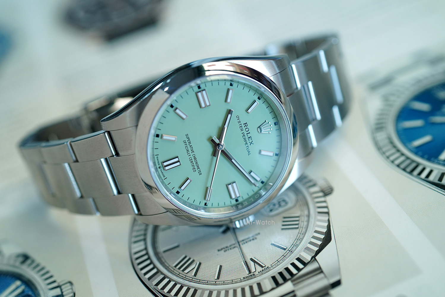 -ของใหม่มือ 1 ไม่เคยใช้งาน หน้าปัดสีเขียว Pistachio รุ่นใหม่ล่าสุด ขนาด 36 mm เครื่อง Auto รุ่นใหม่ Cal.3230 สำรองพลังงาน 70 ชม.