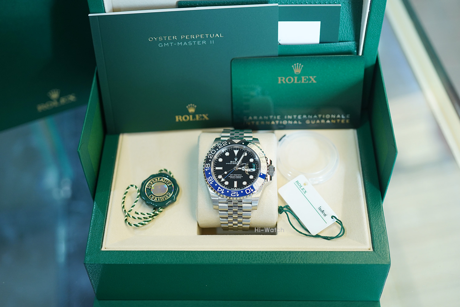 -Used Like New หน้าปัดดำ ขนาด 40 mm ขอบเซรามิคน้ำเงินดำ (Batman) เครื่อง GMT รุ่นใหม่ Cal.3285 สำรองพลังงาน 70 ชม. สายจูบิลี่ บัคเคิลบานพับข้อกลางเงา